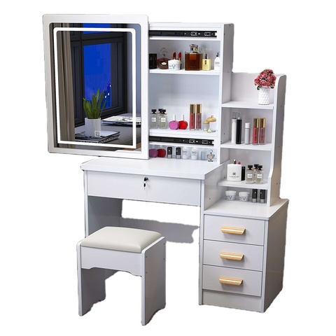 Diseños multifunción Espejo de tocador blanco Led Dormitorio Chic Maquillaje Vanidades Tocador con luces