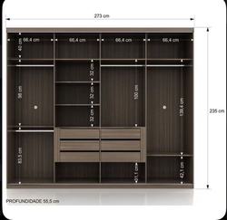 モダンな3ドア3引き出しワードローブ大容量ダークグレー