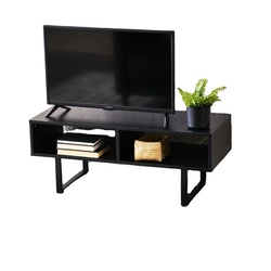 黒い家庭用必需品ジェームズタウンTVスタンドコーヒーテーブル長方形収納コンパートメント付きブラックオークウッドグレイン