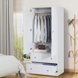 2025新しいモダンシンプルなダブルドアアーモア木製ワードローブハンギングロッド付きベッドルーム家具