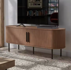 テレビスタンド木製フルートエンターテインメントセンタースライドドアテレビキャビネットリビングルームミッドセンチュリーモダン