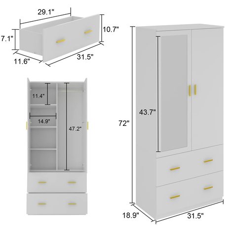 ワードローブ4ドア付きシンプルデザイン