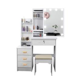 寝室家具フルレングスミラーホワイトメイクアップバニティテーブルセット光付きドレッシングテーブル